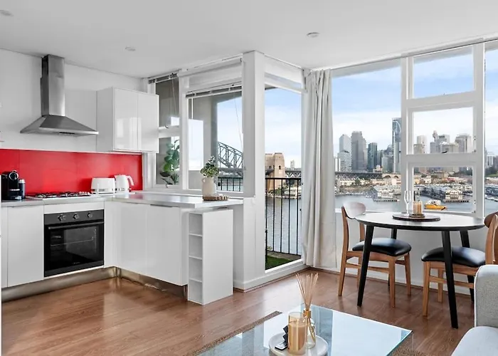 Als u in Harbour Horizons - Chic Studio Above Sydney'S Icons van 39 m² verblijft, kunt u Opera van Sydney bereiken, gelegen op circa 2 km afstand. Bij het appartement is Wi-Fi en een privéparkeerplaats beschikbaar.